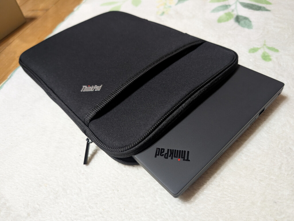 このポイントは、ThinkPad X13 Gen 6 Intelを持ち運ぶときに収納するケースを何か買うために使いたいと思っていました。通勤の時には、大きなバックパックに専用の収納スペースがあるので良いのですが、プライベートで出掛けるときのためのケースが欲しかったんですよね。さすがにレッツノート用のケースにいつまでも入れているわけにもいきませんし。