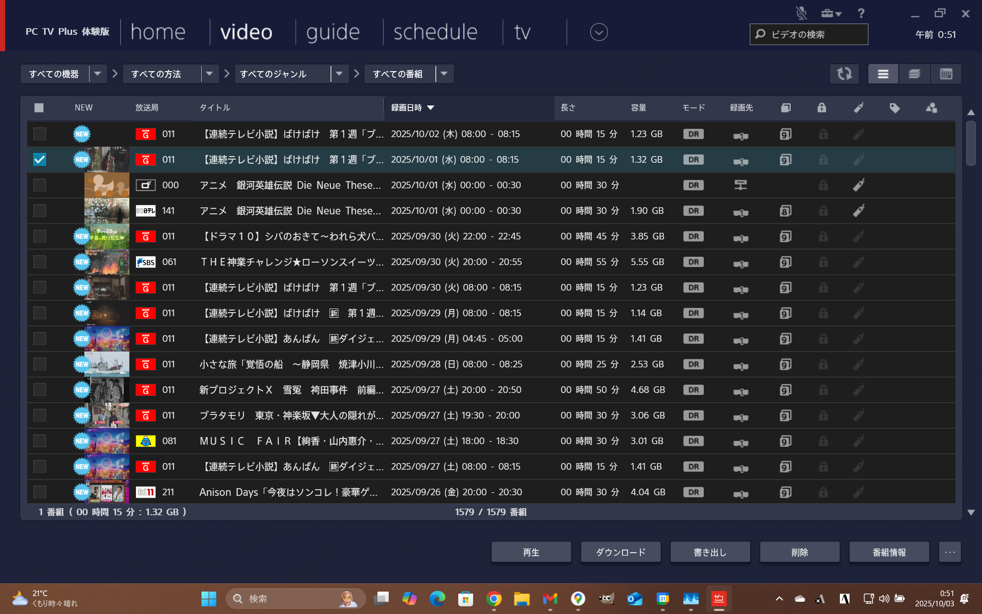 再生画面自体は、tvとvideoの両モードで共通。どちらのモードでも、KB5065789が適用された状態で、問題なく映像と音声が再生されます。また、BSデジタル放送の録画データ・ライブ受信ともに、緑色のノイズが載ることはありません。完全に正常に動作していると考えて良さそうです。