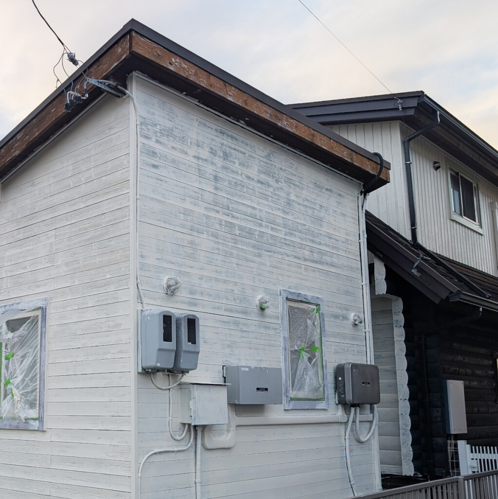 それらの用事も午前中にほぼ片付いて、午後にちょっとまとまった時間が空くことになりました。そうなると、やっぱり外壁塗装でしょう!と思ってしまうワタシはもはやビョーキです。しかし、自覚はあっても止まれないのが悲しい性。早速準備して、離れの北側の下塗りを始めました。