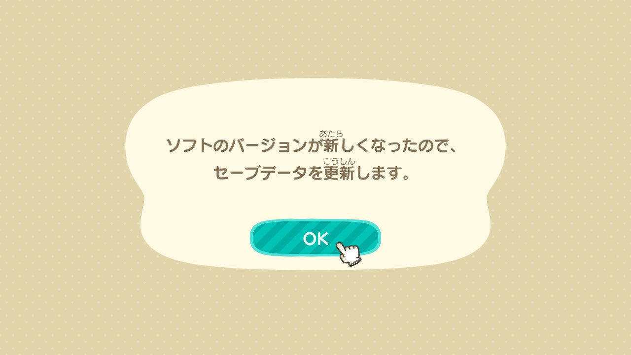 どうやら14日の午後8時頃から配信がスタートしていたようで、ワタシのSwitchでも14日のうちに無事アップデートが完了しました。あつ森がインストールしてあるSDメモリーカードの容量がかなり逼迫してきていたので、ちゃんとアップデートできるか心配だったのですが、何とかなったようです。