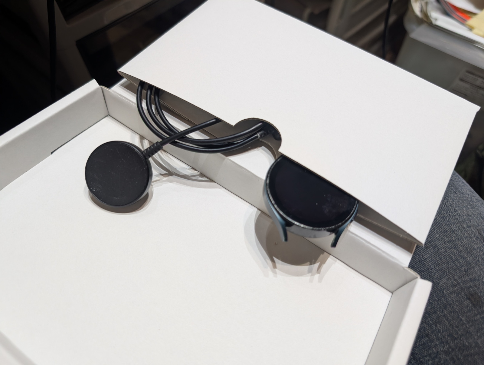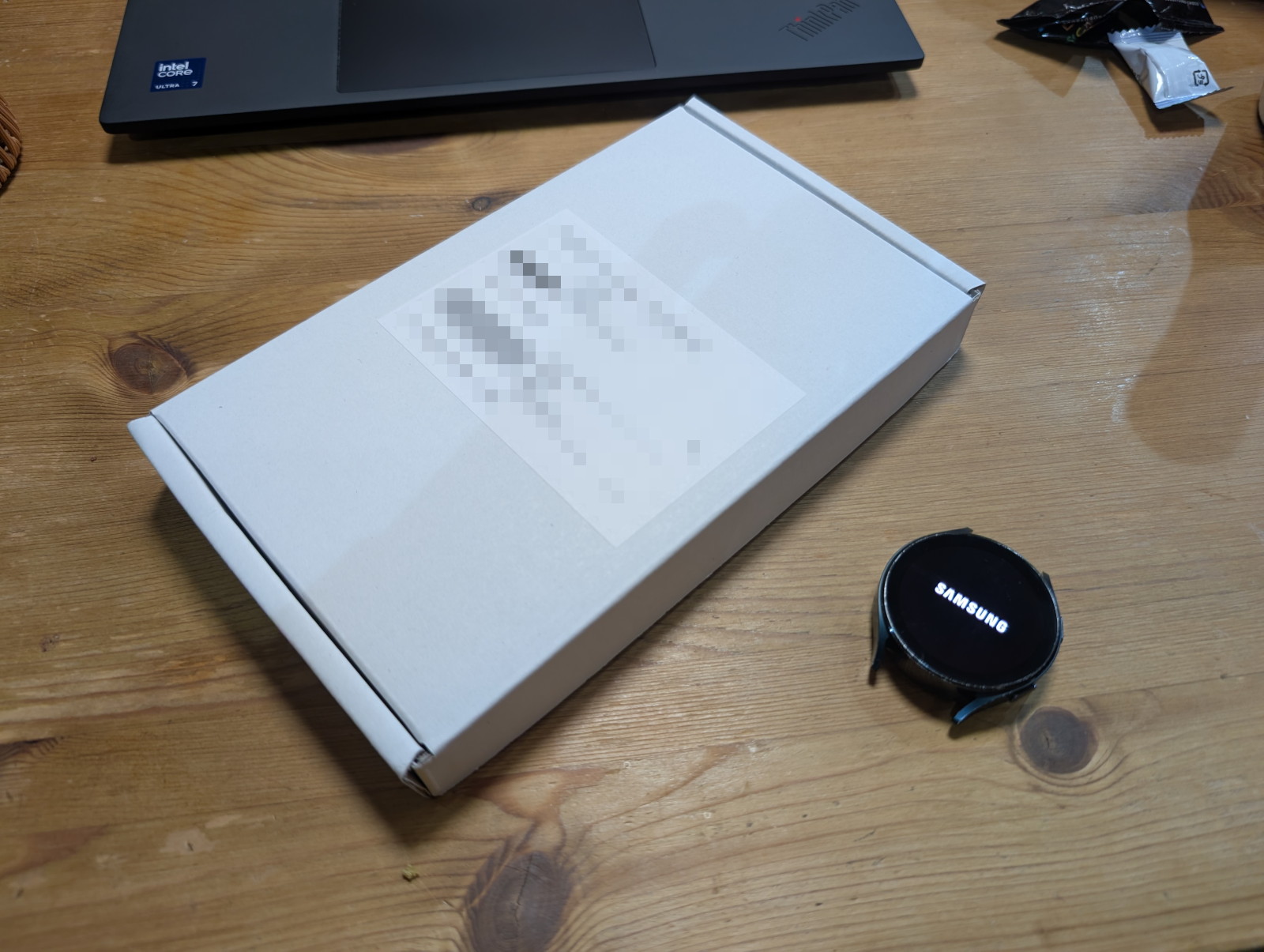 リセットが済んだら、Galaxy Watch4の外装をキレイに清掃して、充電器と一緒に(買い取り品として必須ではないのですが、タダで引き取ってもらえるのなら安いもの)箱の奥、ポケット状になった部分に収めます。あとは、同梱されていたゆうパケットの着払いの荷札を貼り付けて、近所のポストに投函すれば出来上がりです。