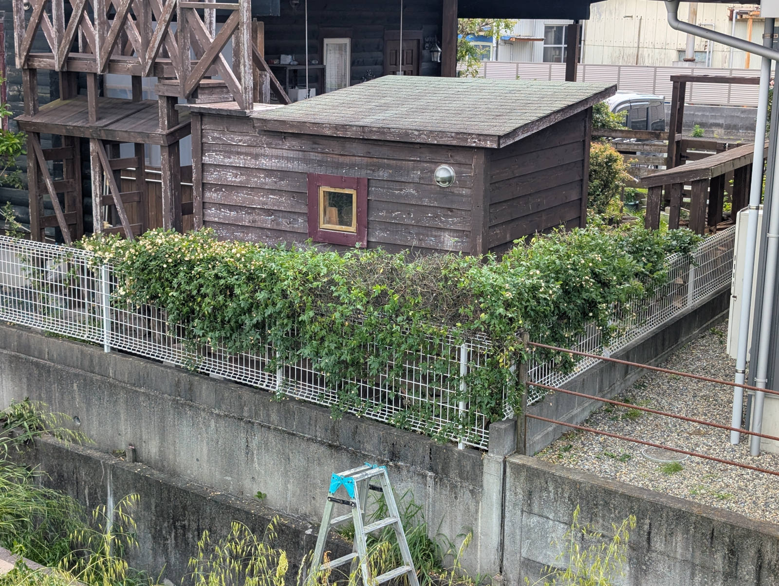 真っ先に手を付けたのが、西側の倉庫の奥に植えたモッコウバラ2号。というのも、お隣さんから「モッコウバラを剪定する予定はありますか?」とやんわりと催促されてしまったので…。もちろん、このまま放っておいては手が付けられなくなりますから、早めに何とかしておかなくてはなりません。