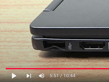 ところが、YouTubeのとあるレビュー動画で、HPから貸し出されているという端末のUSB Type-A端子の辺りが凹んでしまっているのを見かけたんですよね。角の部分まで、ちょっと歪んでいるように見えます。